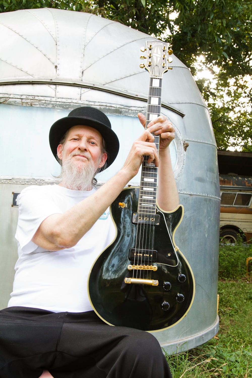 Shredding that garage rockabilly with an ear-to-ear grin, Johns once made his living touring, playing Europe and every city in the U.S. and Canada. Now he spends his days at a local non-profit for the disabled that used to be a Ramada Inn off of Ben White. He pays his rent ($390) out of his Social Security check ($695), and his beloved cat Maybelline is a state-certified service animal for the companionship she provides him.