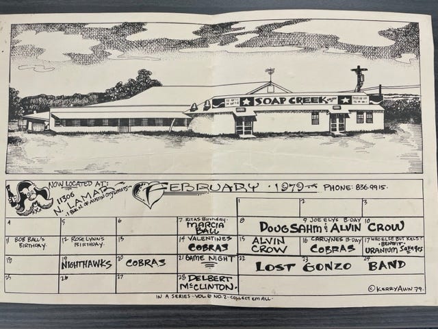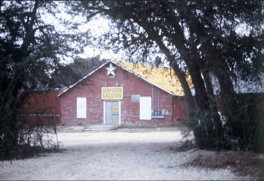 When the Majewskis opened Soap Creek, other live music clubs in town included not only the Armadillo, but Castle Creek, Split Rail, One Knite, Black Queen, Flight 505, Broken Spoke, South Door, Saxon Pub, Toad Hall, River City Inn, Bevo’s Westside Tap Room, Continental Club and Mother Earth. Why would anyone drive the hell out to West Lake Hills to party?